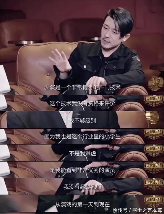 他认为表演不能带有功利性,不是只为了博得观众的认可。 真正的演员应该与剧本合为一体,去体味人物特点,去享受表演的乐趣。 这种心态的改变,导致在选择剧本上也与之前有很多不同。